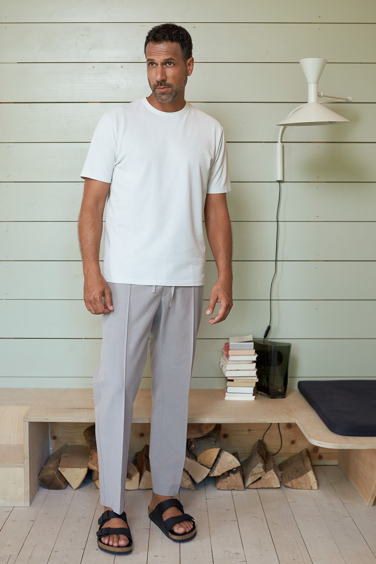 Tencel™, a brand of Lenzing AG, is an innovative, eco-friendly fabric made from renewable wood fibers. Its production saves water and energy and its odor-free properties reduce the need for frequent washing.