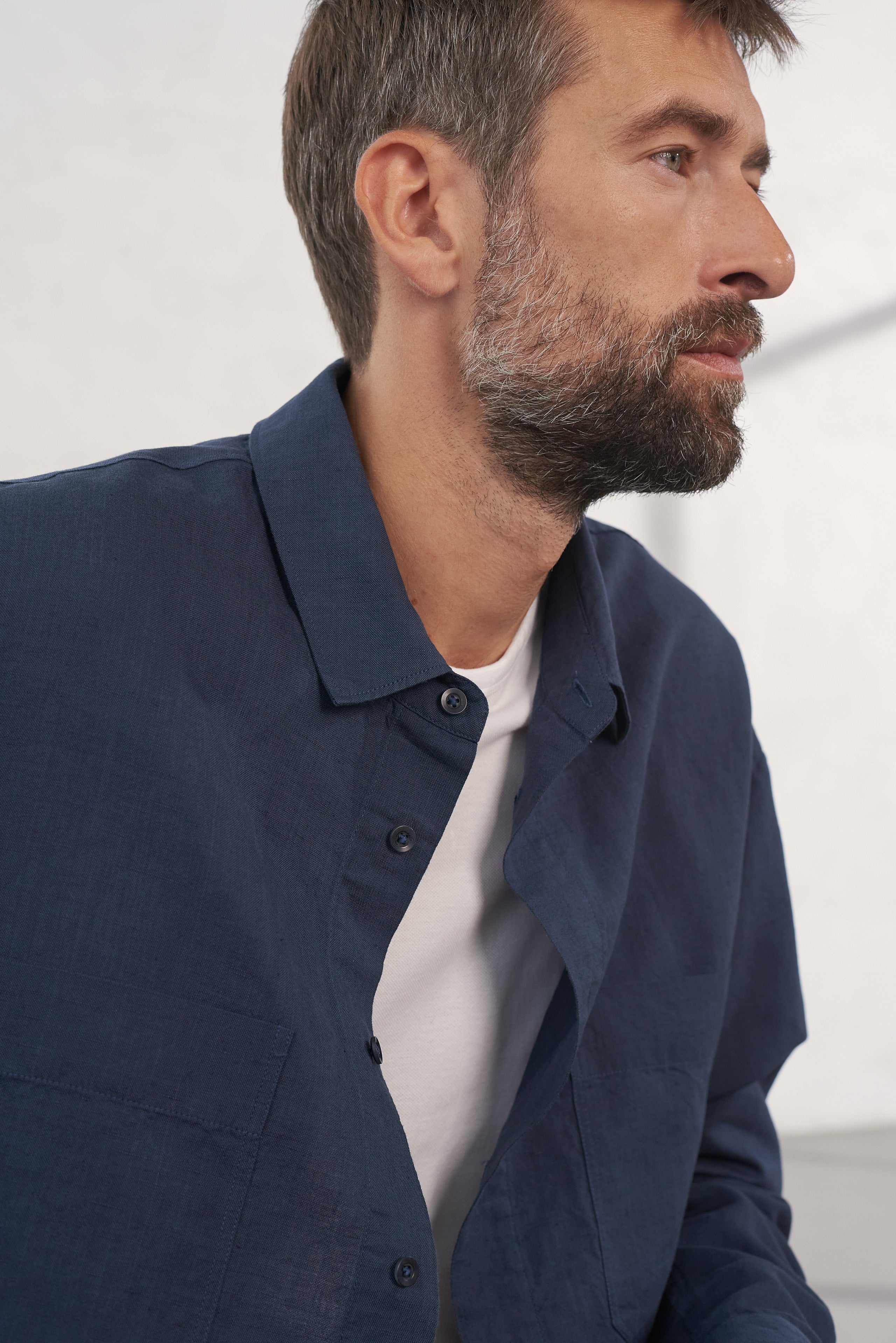 Wir haben diesen hochwertigen Stoff in Portugal entdeckt und ihn wegen seiner besonderen Oberfläche und seiner atmungsaktiven Eigenschaften ausgewählt. Eine langlebige Mischung aus pflegeleichter Bio-Baumwolle und kühlendem Leinen. Ein Stoff, der schön altert und dich lange begleiten wird.