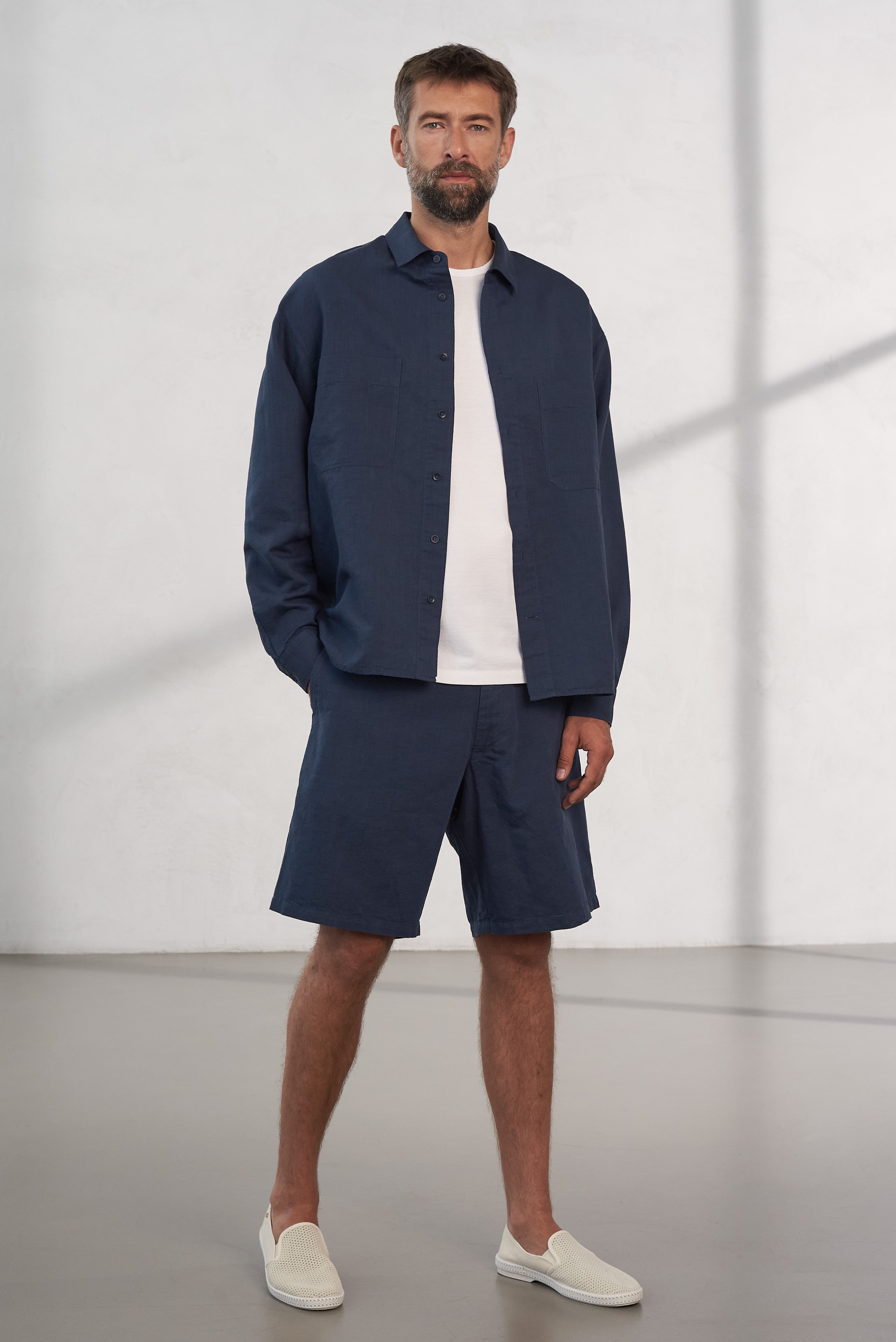 Das Dario Hemd verbindet lässigen Stil mit sommerlicher Leichtigkeit. Der oversized Schnitt mit überschnittenen Schultern und die leichte Leinen-Baumwoll-Mischung machen es ideal zum Drüberziehen über ein T-Shirt oder geschlossen für einen cleanen Look. Zwei Brusttaschen und vegane Knöpfe sorgen für ein entspanntes Finish. Vorgewaschen, um Einlaufen zu vermeiden – inklusive Reparatur-Garantie. Ethisch gefertigt in Litauen aus 55 % zertifizierter Organic Cotton und 45 % Leinen.