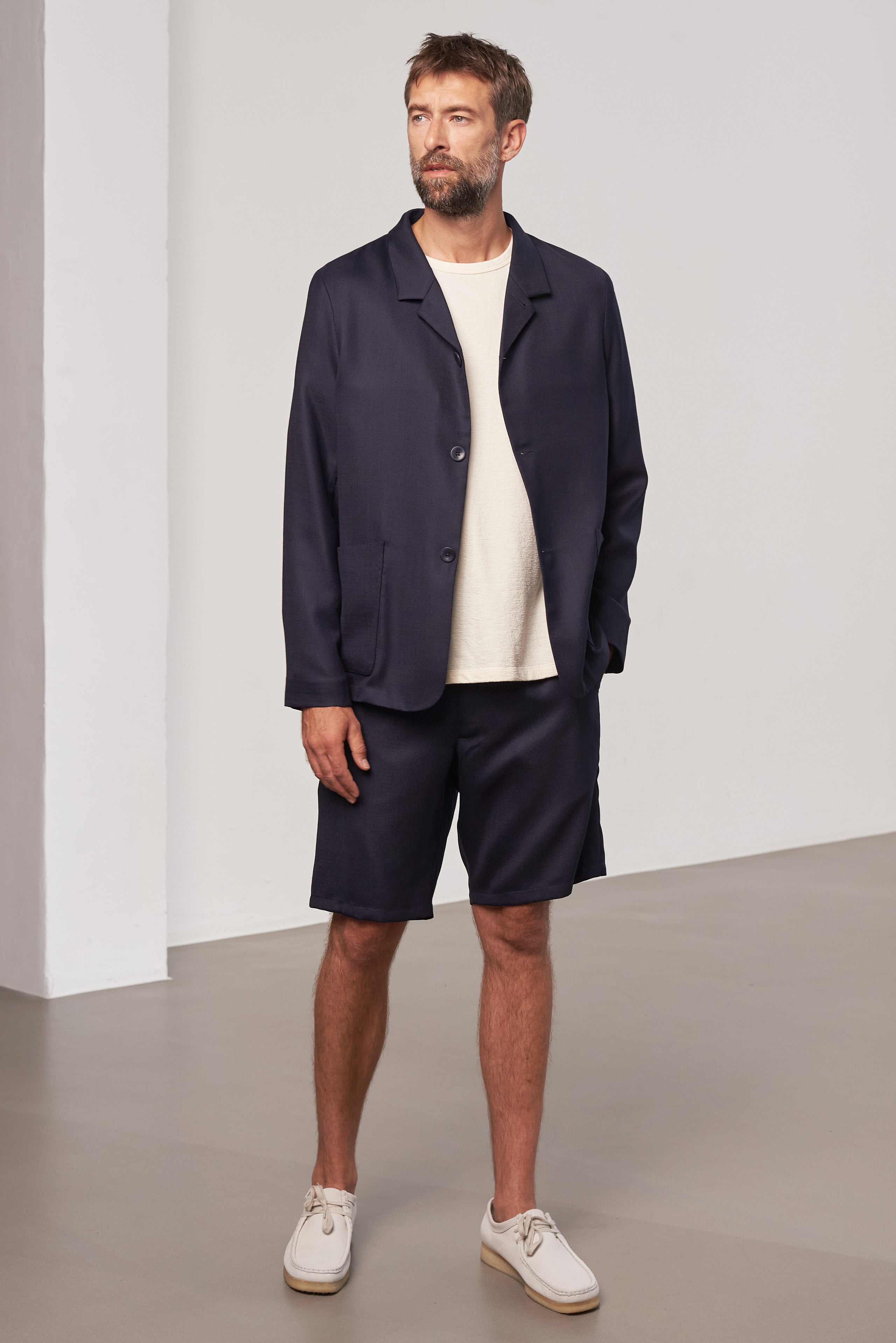 Gefertigt aus zertifizierter Sommerwolle in luftiger Panama-Webung, steht dieser unkonstruierte Blazer für einen entspannten, stilvollen Look. Der lockere Schnitt und der weiche Fall machen ihn ideal für warme Tage – als Teil eines legeren Anzugs oder solo als leichte Jacke. Nur in den Ärmeln mit Tencel™ gefüttert für zusätzlichen Komfort. Fair gefertigt in Litauen.