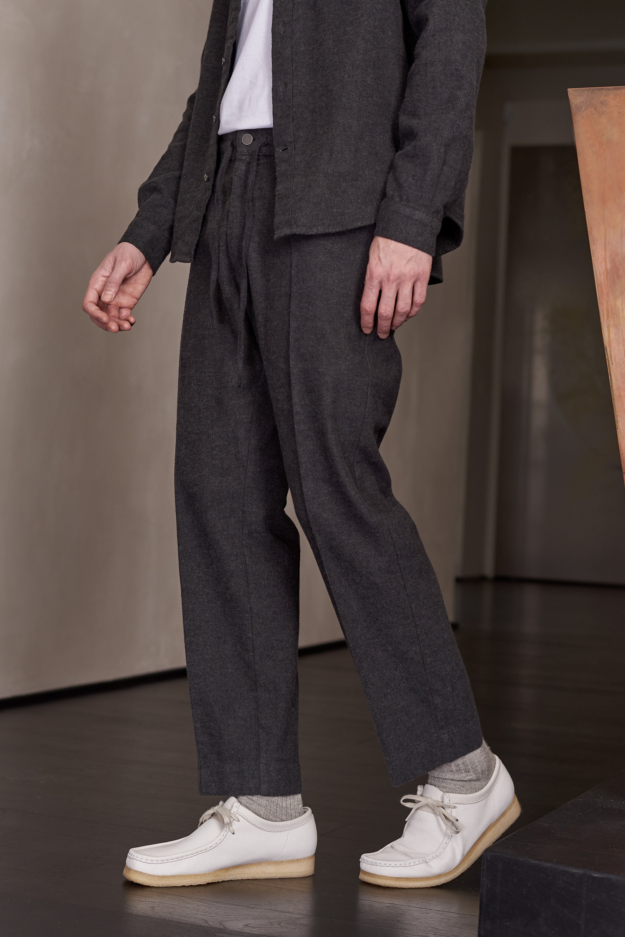 Die Magnus Hose kombiniert lässigen Komfort mit klarer Form. Aus warmem, angerautem Bio-Flanell gefertigt, sorgt das stark gedrehte Garn für Strapazierfähigkeit und weniger Pilling. Die eingenähte Bügelfalte hält das weite Bein in Form, der elastische Bund mit verstecktem Kordelzug bietet Bewegungsfreiheit. Vorgewaschen, um Einlaufen zu vermeiden – inklusive Reparatur-Garantie. Ethisch gefertigt in Litauen aus 100 % zertifizierter Baumwolle.