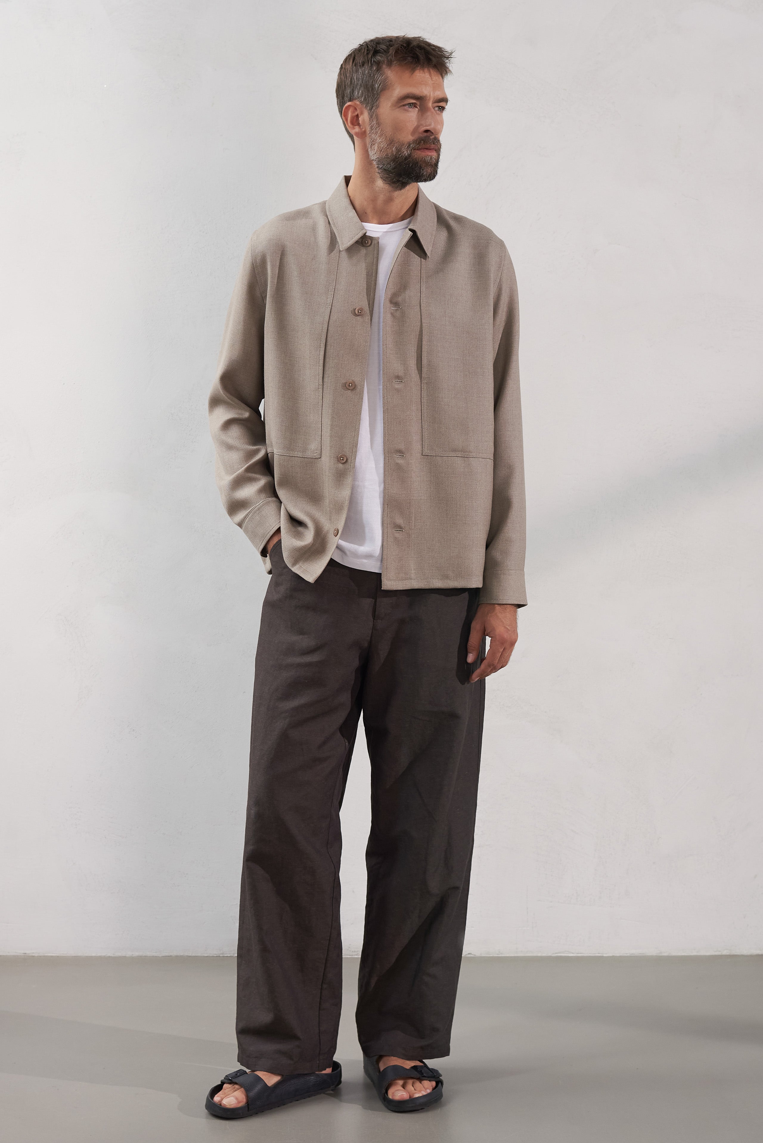 Owe ist unser Overshirt mit entspannter Silhouette und klassischem Anspruch. Die luftige Sommerwolle in strukturierter Panama-Bindung ist leicht und elegant – ideal für wärmere Tage. Mit durchdachten Details und zeitlosem Kragen. Maschinenwaschbar, mit Reparatur-Garantie. Fair gefertigt in Litauen.