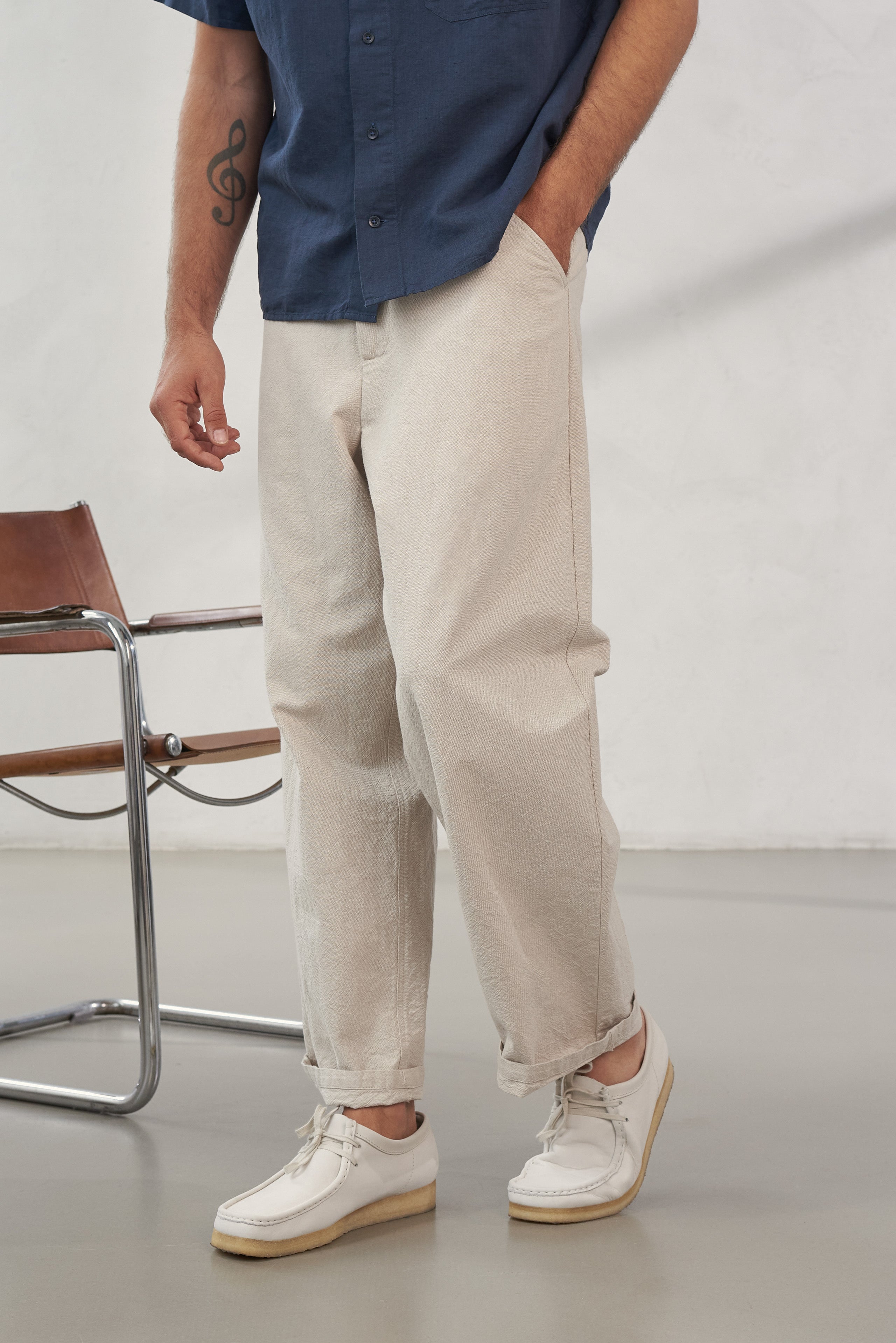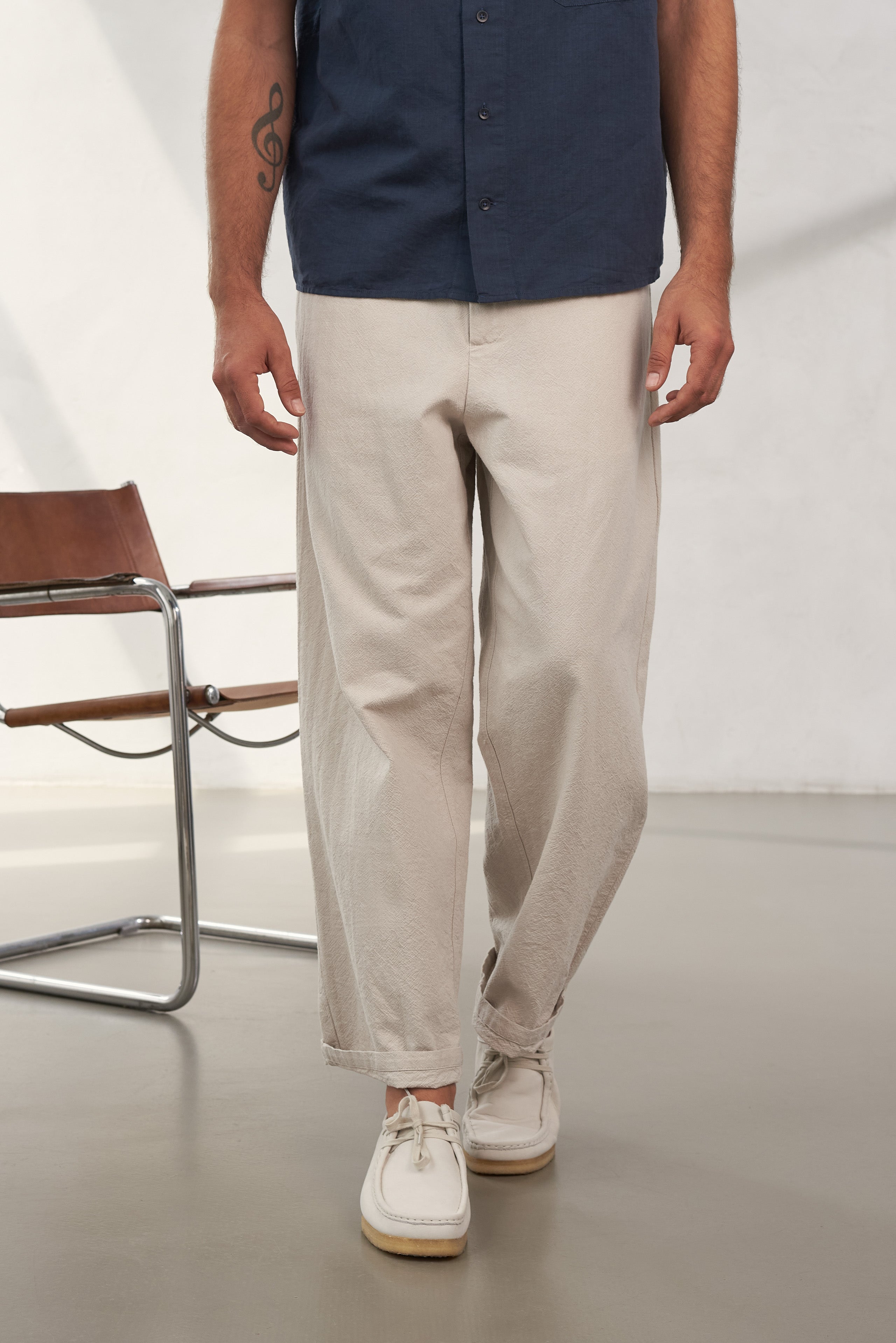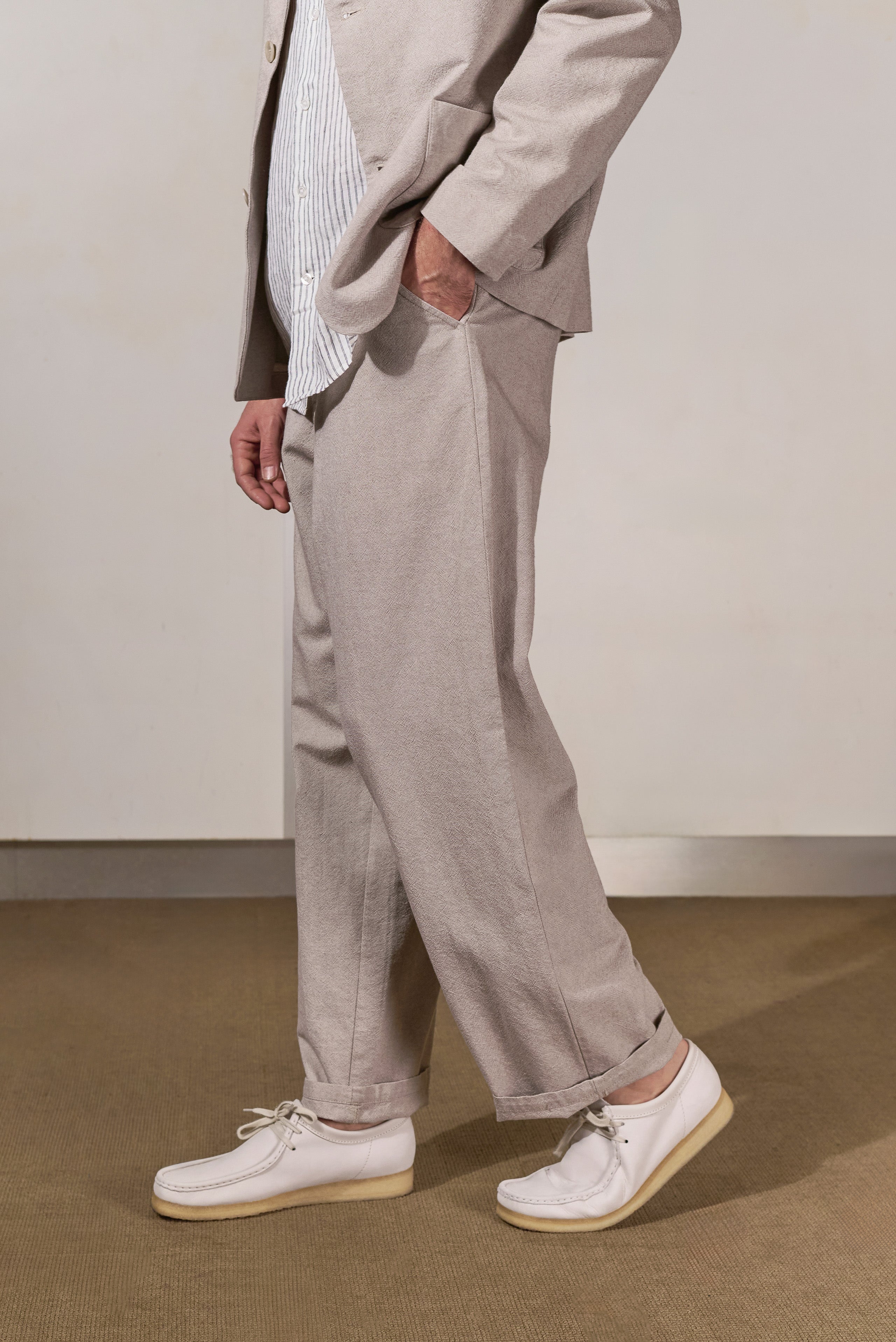 Explore a variety of casual-classic summer suits for men fitting your relaxed summer wedding attire or any other event: Introducing our "Enver" blazer: light, relaxed, and unconstructed, sans shoulder pads. This creates a casual yet elegant appearance, offering maximum comfort for summer. Pair it with our timeless "Jostha" trousers, featuring a straight leg and tailored accents, for a classic and stylish ensemble. Opt for our "Max" drawstring trousers to elevate your look with a touch of fashion-forward flair – the wide leg, enhanced by a sewn-in pleat, ensures a trendy silhouette. These fits – or Companions – are offered in a naturally cooling linen-cotton blend or in a sleek sustainable Tencel™-cotton blend.