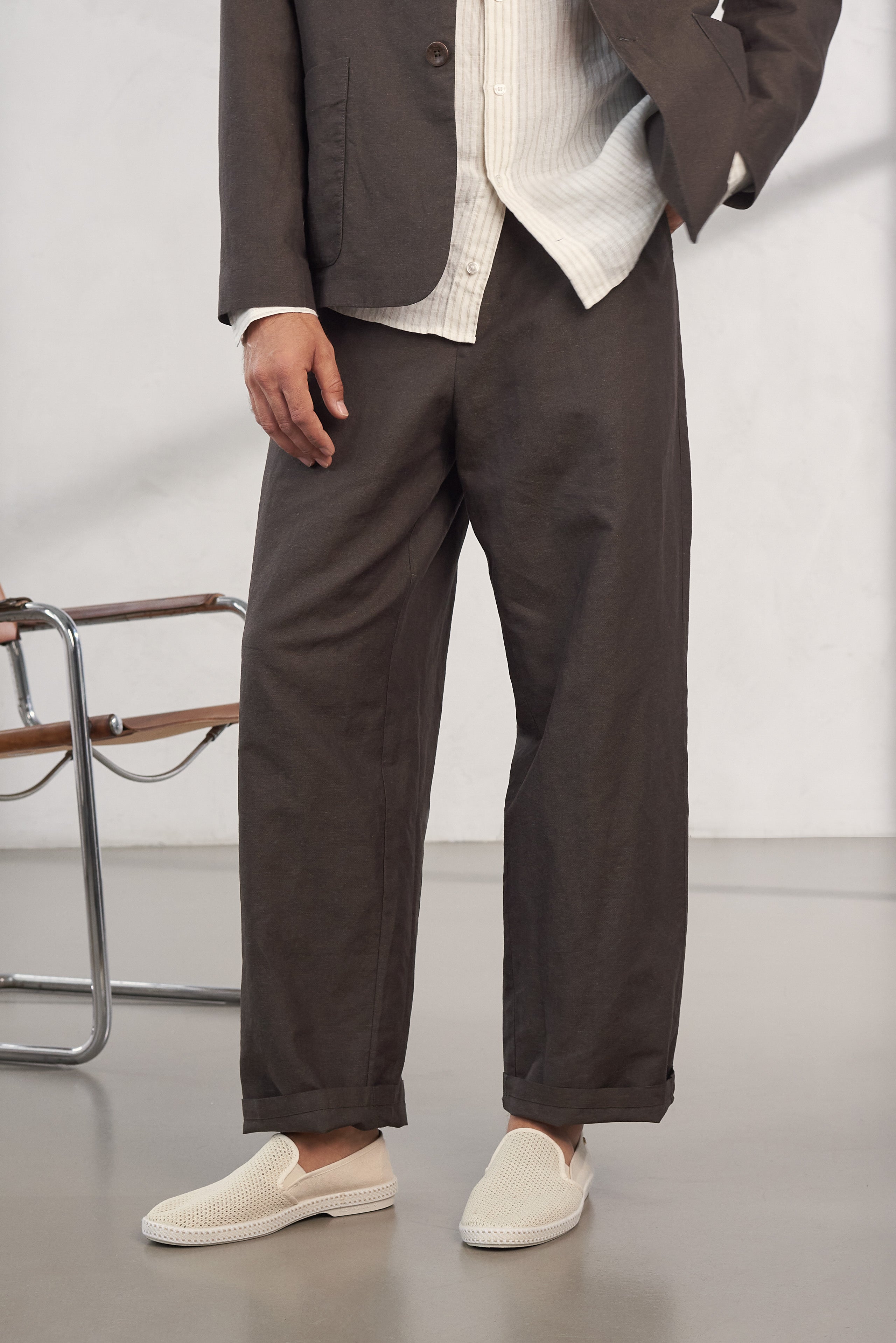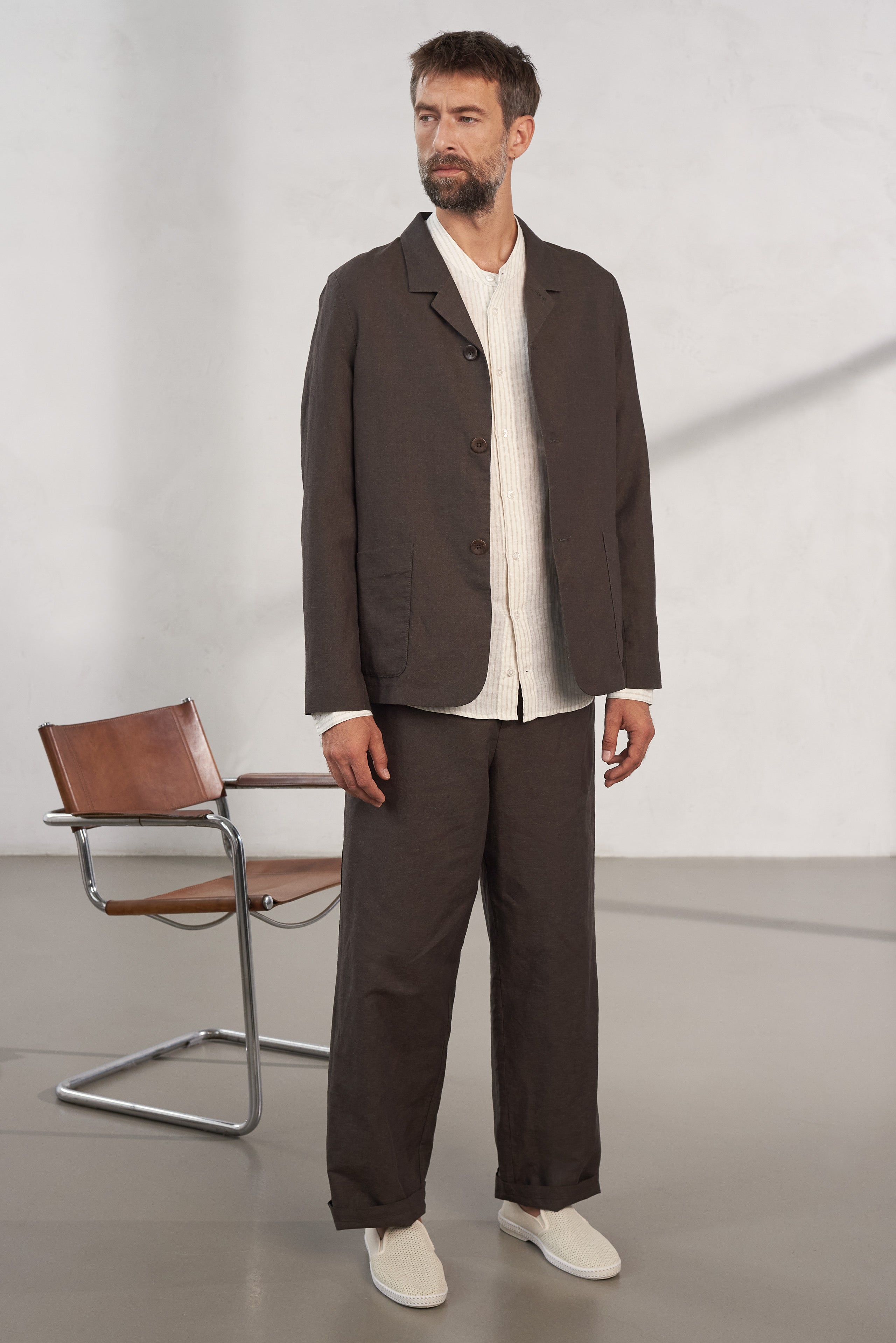 We discovered this high-quality fabric and chose it for its special surface and breathable properties. A durable blend of easy care organic cotton and cooling linen. A fabric that will age beautifully and stay with you for a long time.