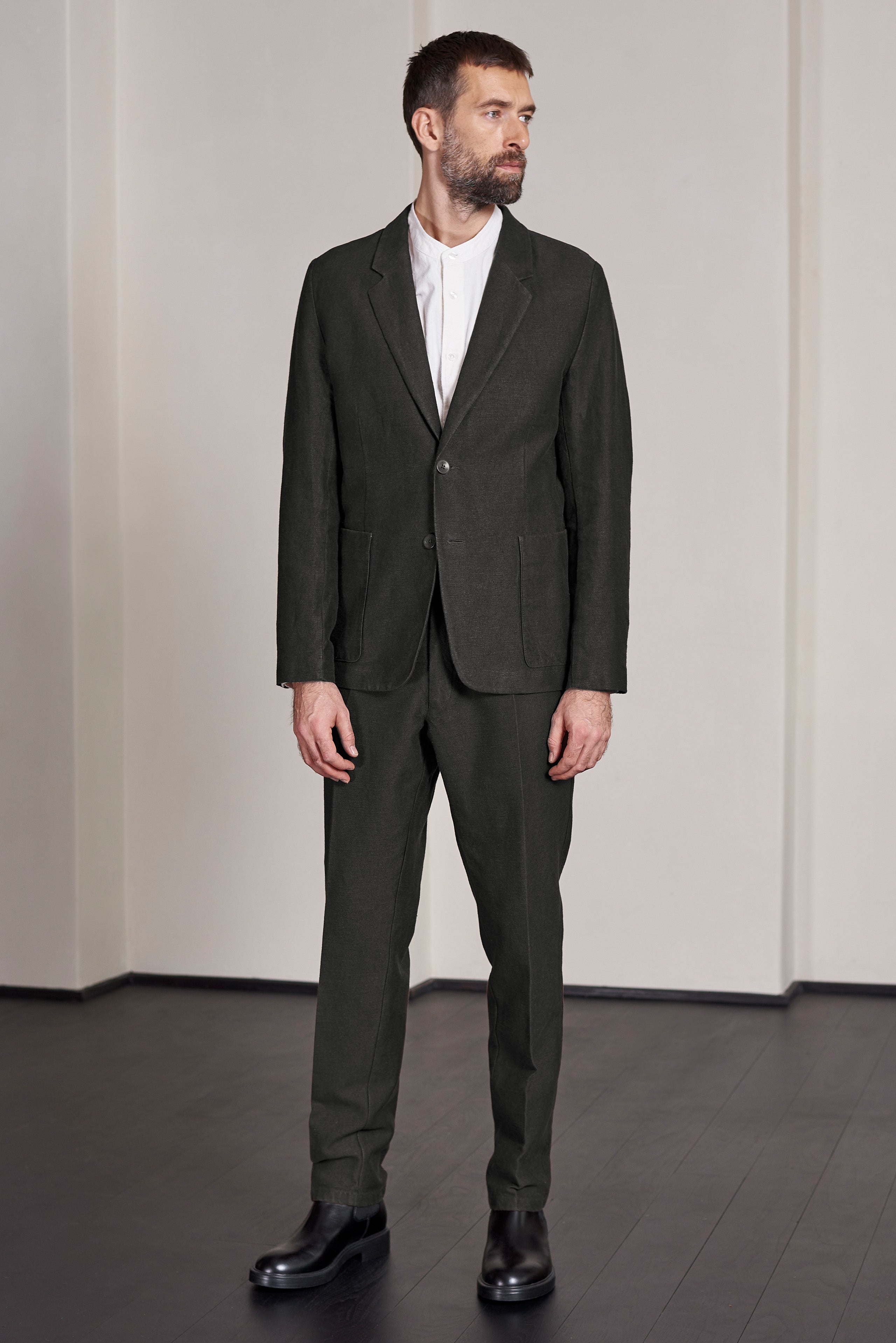 Elevate your daily style with our relaxed linen blend blazer, meticulously crafted in a small family-run Lithuanian manufactory. Versatile for everyday wear as a light jacket or part of a casual suit, it features two patch pockets, four inside pockets, and a coin pocket for practical functionality. The stone nut buttons and regular fit, sans padded shoulders, offer a timeless and comfortable aesthetic.