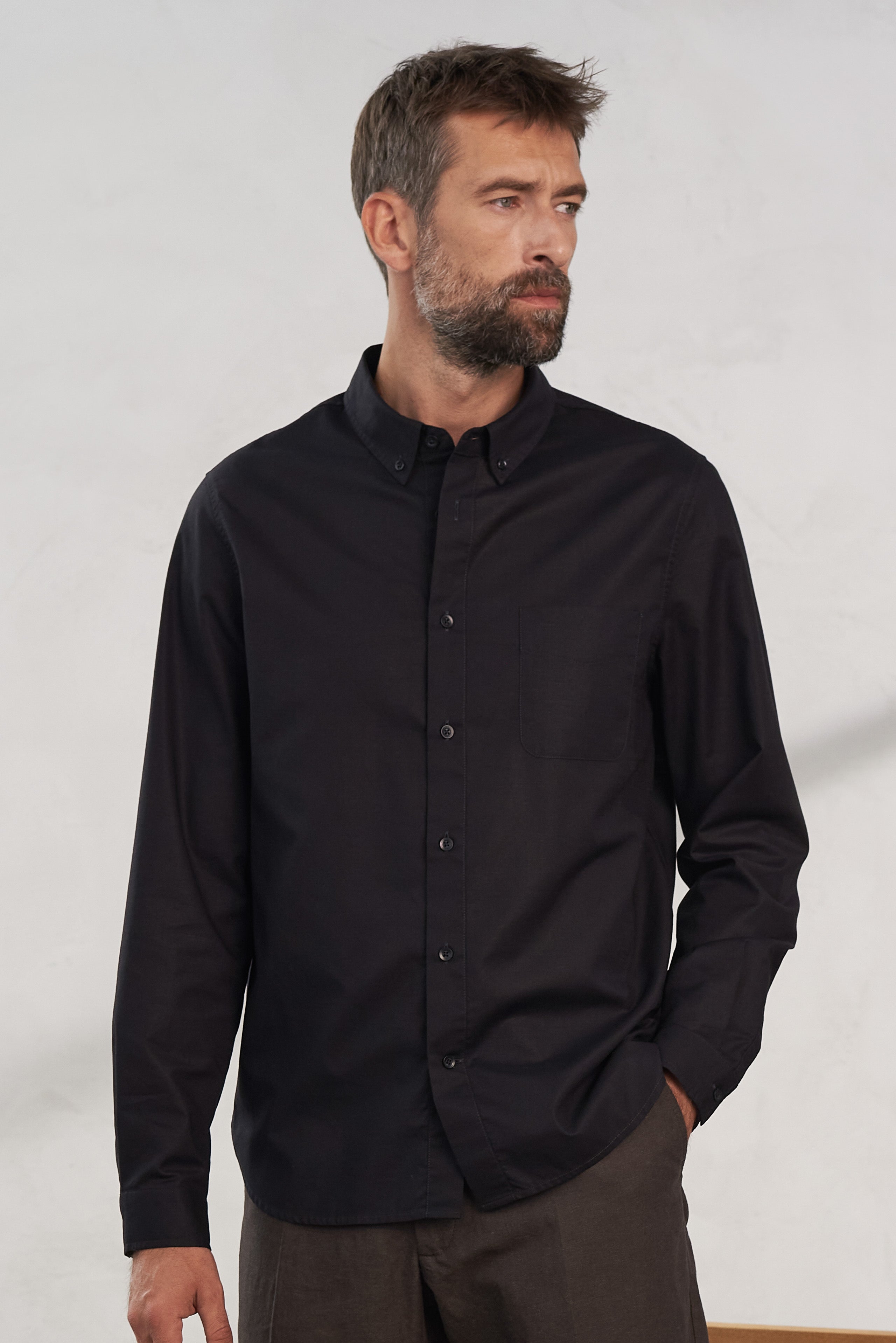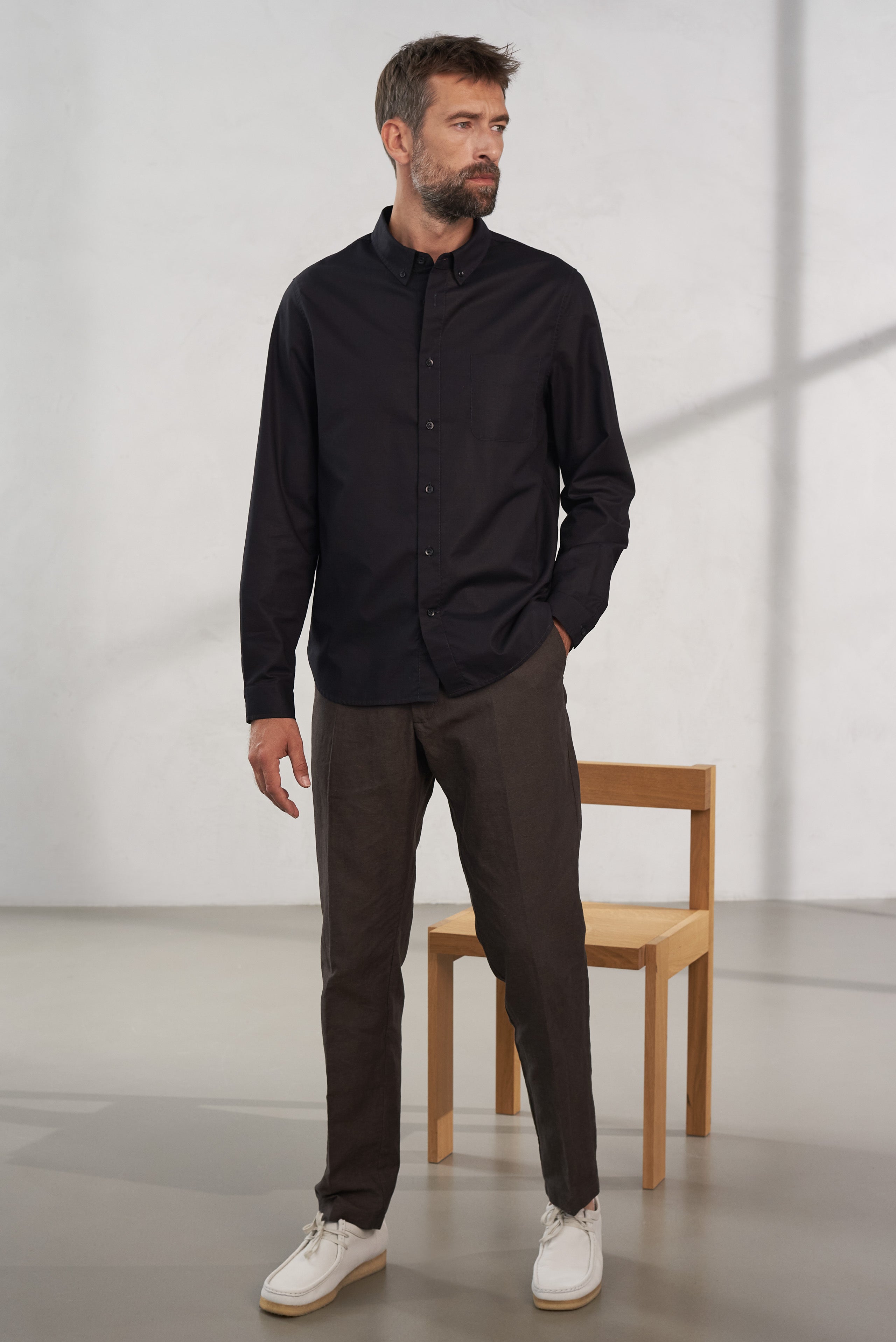 Ken is our relaxed button-down, made from a soft TENCEL™ blend of organic cotton, Tencel™, and linen. Light, breathable, and fluid in drape – perfect for warmer days. The open neckline, curved hem with side triangle details, and slightly looser fit create a clean yet laid-back silhouette. Pre-washed to avoid shrinkage. Repair guarantee included. Ethically made in Lithuania.