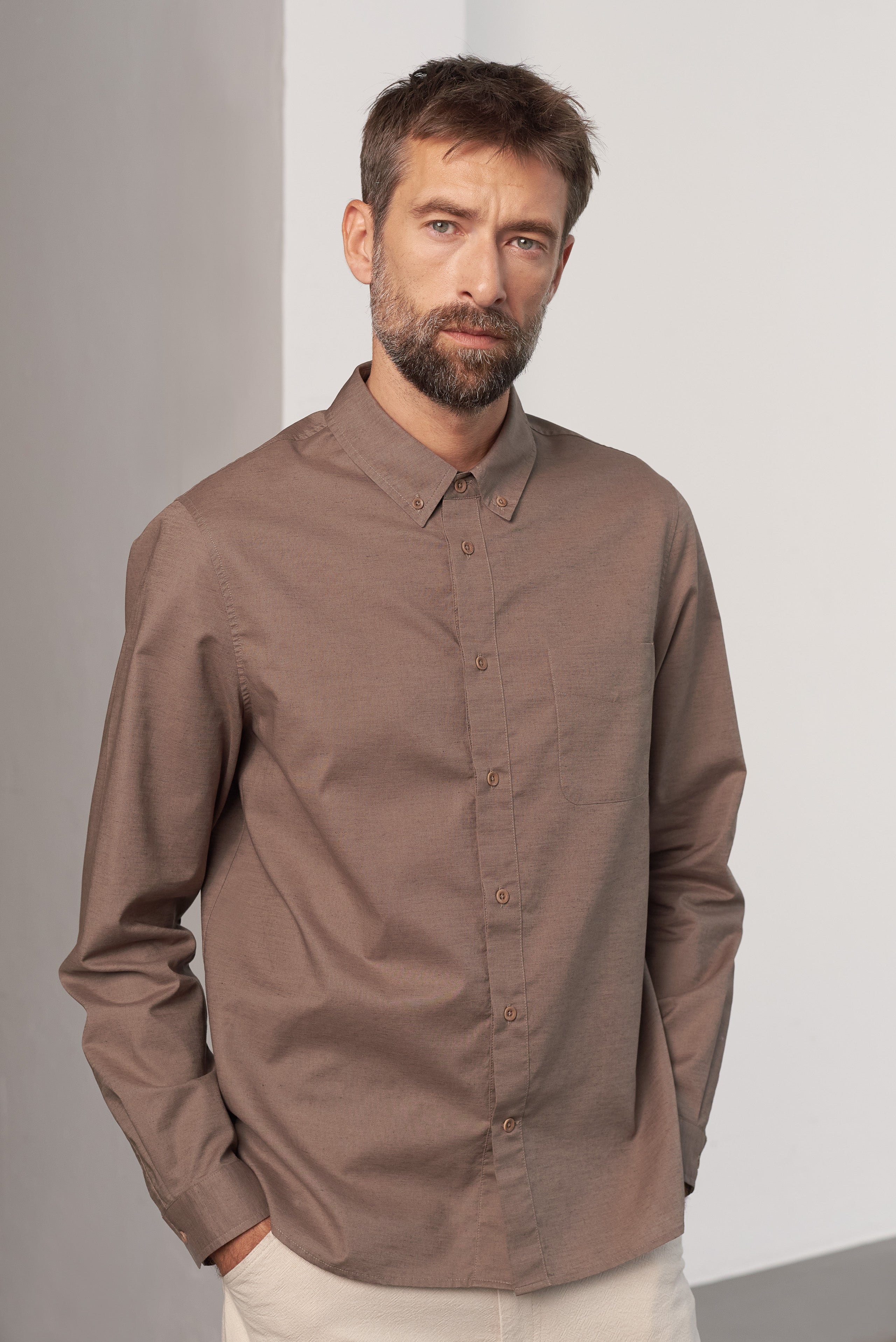 Tencel™ blend button-down shirt Ken in clay