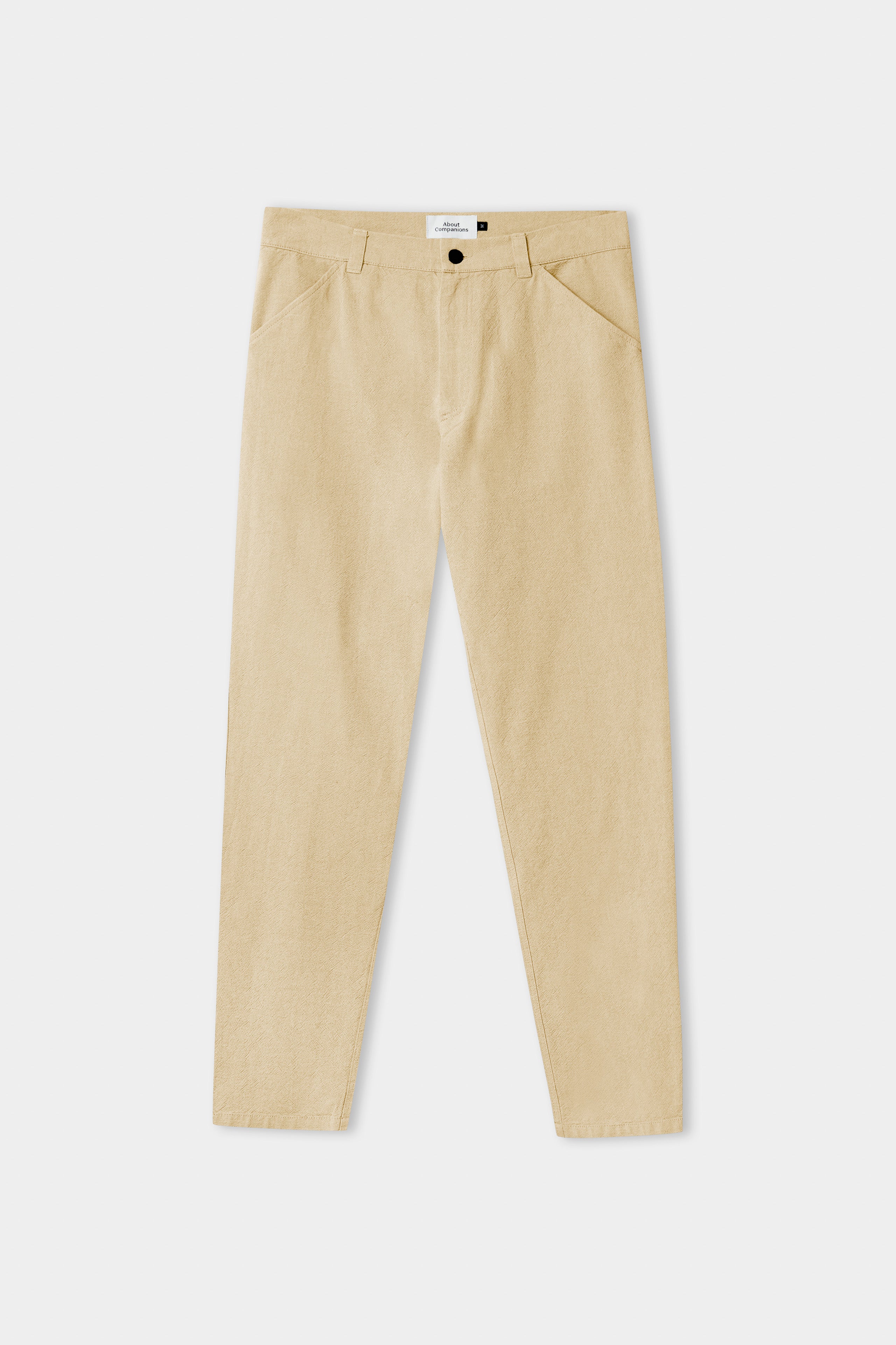 Reliable and stylish 5-pocket trousers crafted from 230g/sqm organic cotton canvas. The fabric features a unique structure for a lightweight, comfortable feel in warmer weather. Regular fit with a straight cut leg. Four pockets, including high quality jeans button and zipper made in Germany. Pre-washed during production to prevent shrinkage. Made ethically in Lithuania with 100% certified cotton, repair guarantee included.