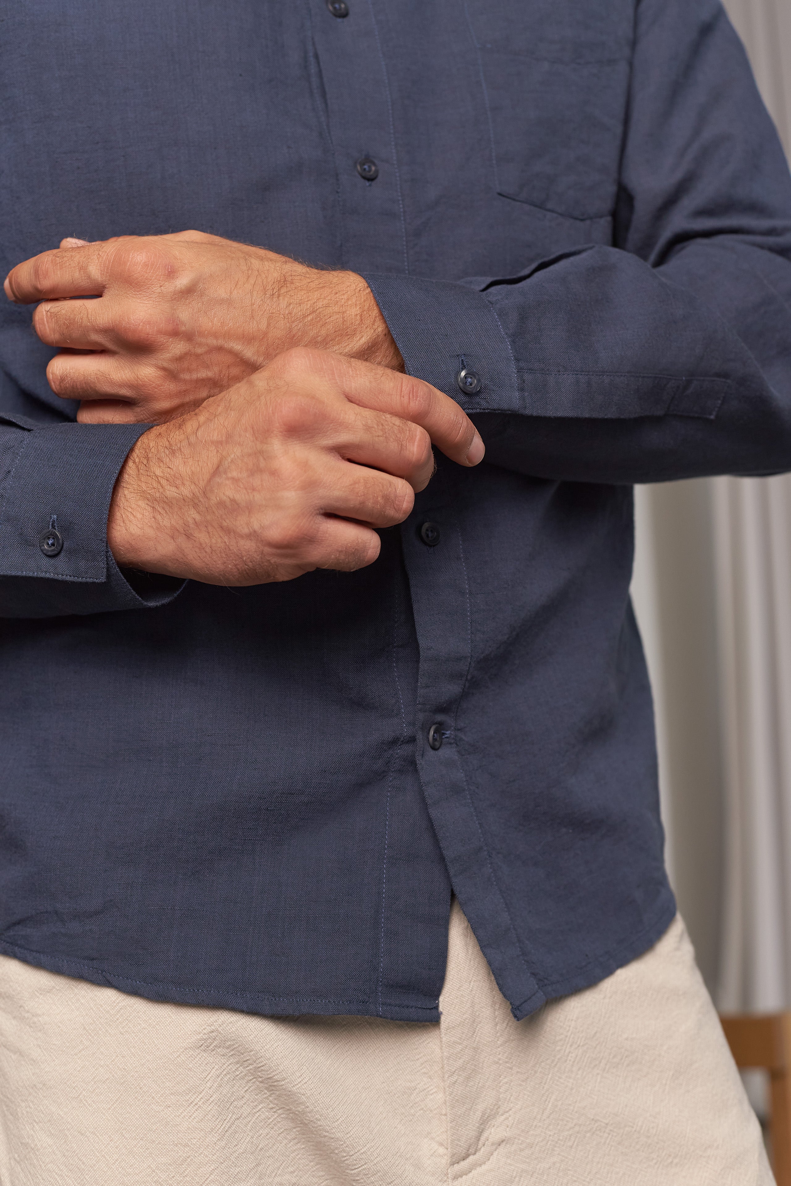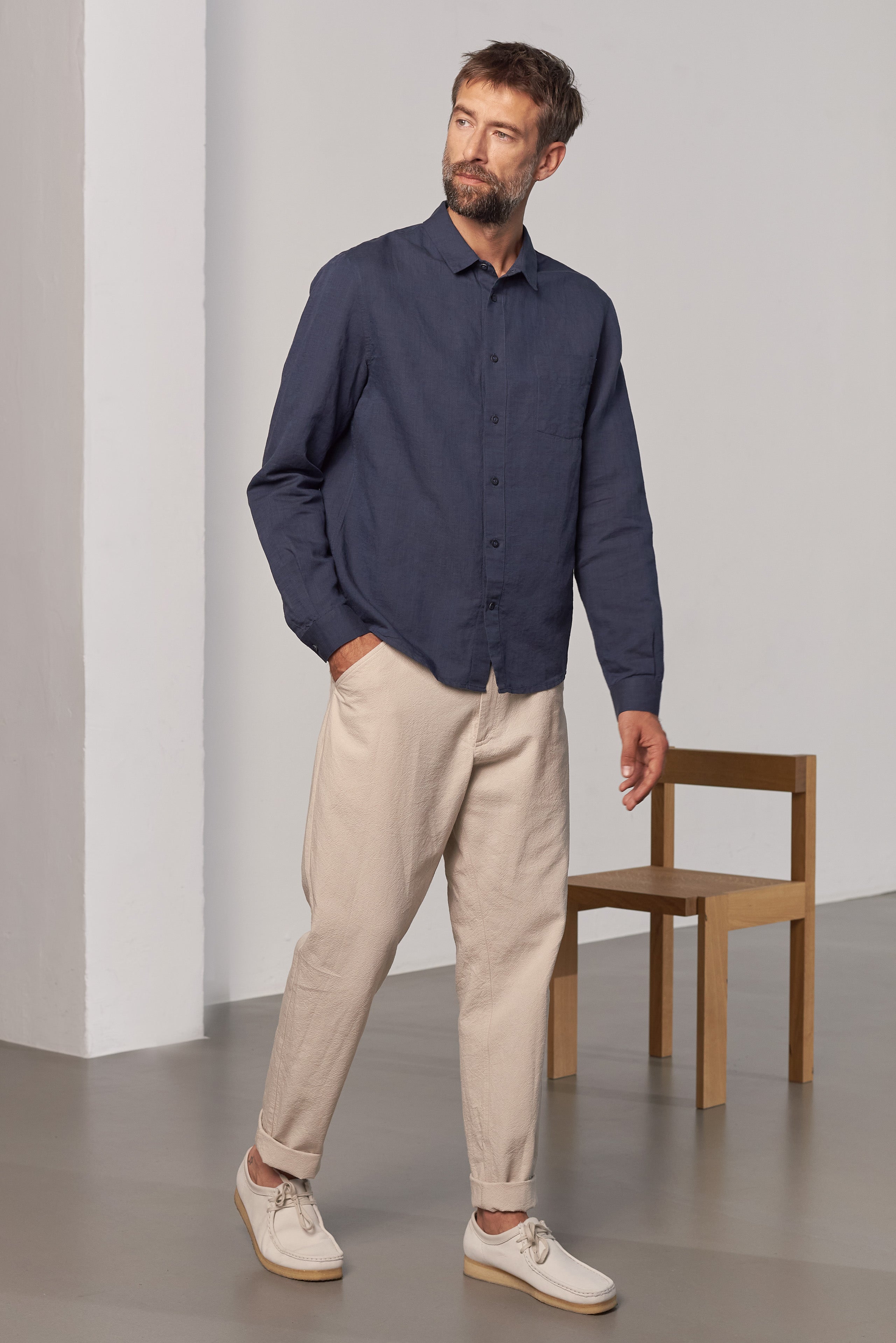 Crafted from a combination of linen and cotton, this classic shirt is perfect for any event. Whether you're heading on vacation, off to work, or attending a special occasion with a blazer, this versatile shirt has you covered. It features a chest pocket, loop detail at the back, and vegan buttons. The regular straight fit provides a comfortable wear. With the added benefits of easy care organic cotton and cooling linen, this shirt has been pre-washed to prevent shrinkage at home.